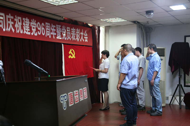 会上,6名新党员在鲜红的党旗下进行了庄严宣誓,所有参会的老党员也一起重温了入党誓词。随后,新党员代表发言,表示在以后的工作生活中,将努力完成党交给的任务,以实际行动来履行誓言,为党旗争辉。张春明总经理宣布了关于表彰8名优秀共产党员和5名优秀党务工作者的决定,并对受表彰的优秀党员和党务工作者进行了颁奖。