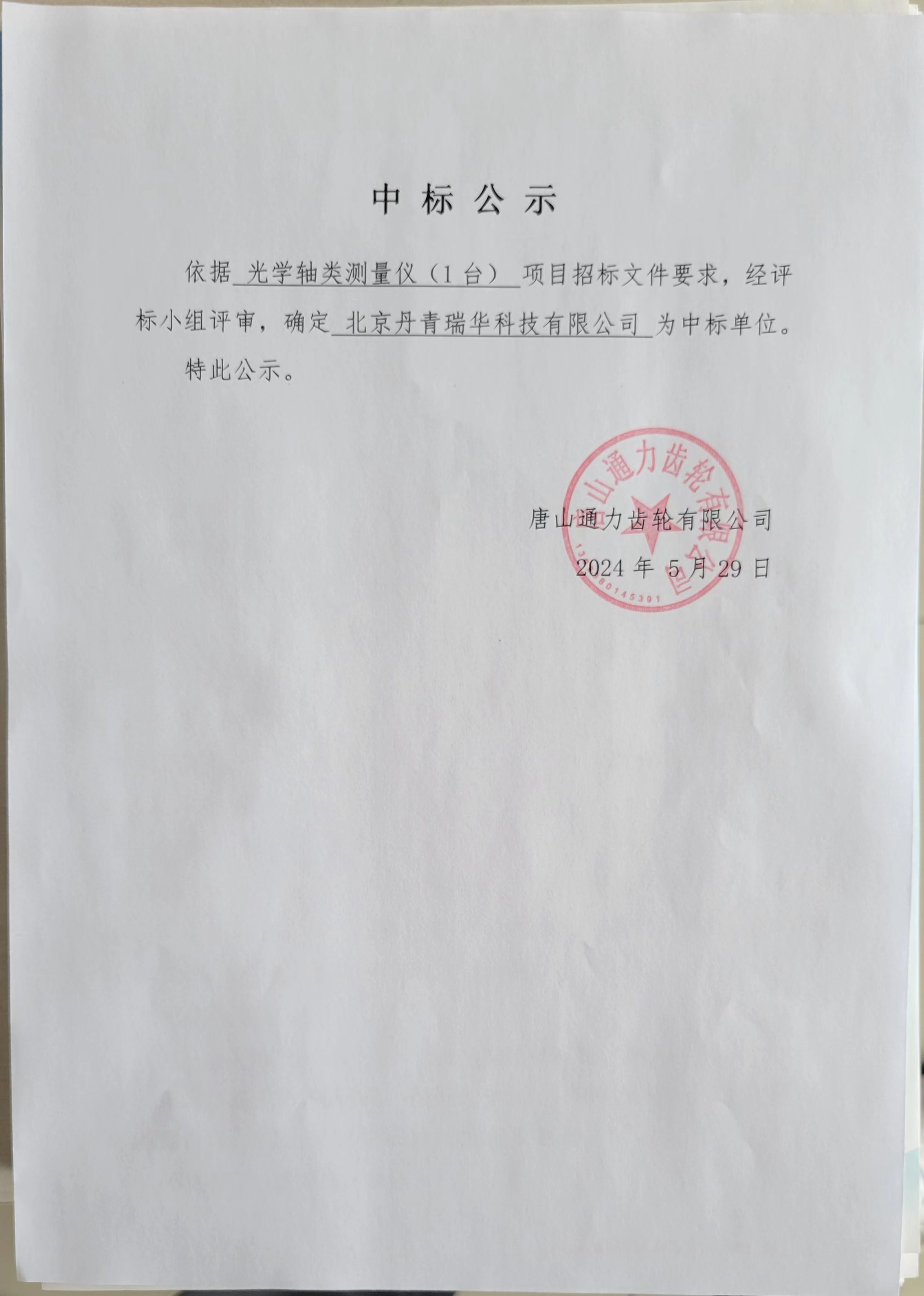 唐山通力齿轮有限公司光学轴类测量仪 (1台)中标公示
