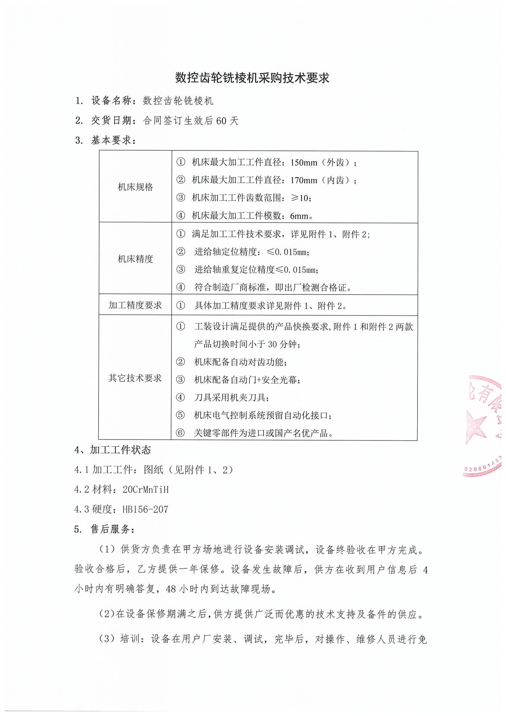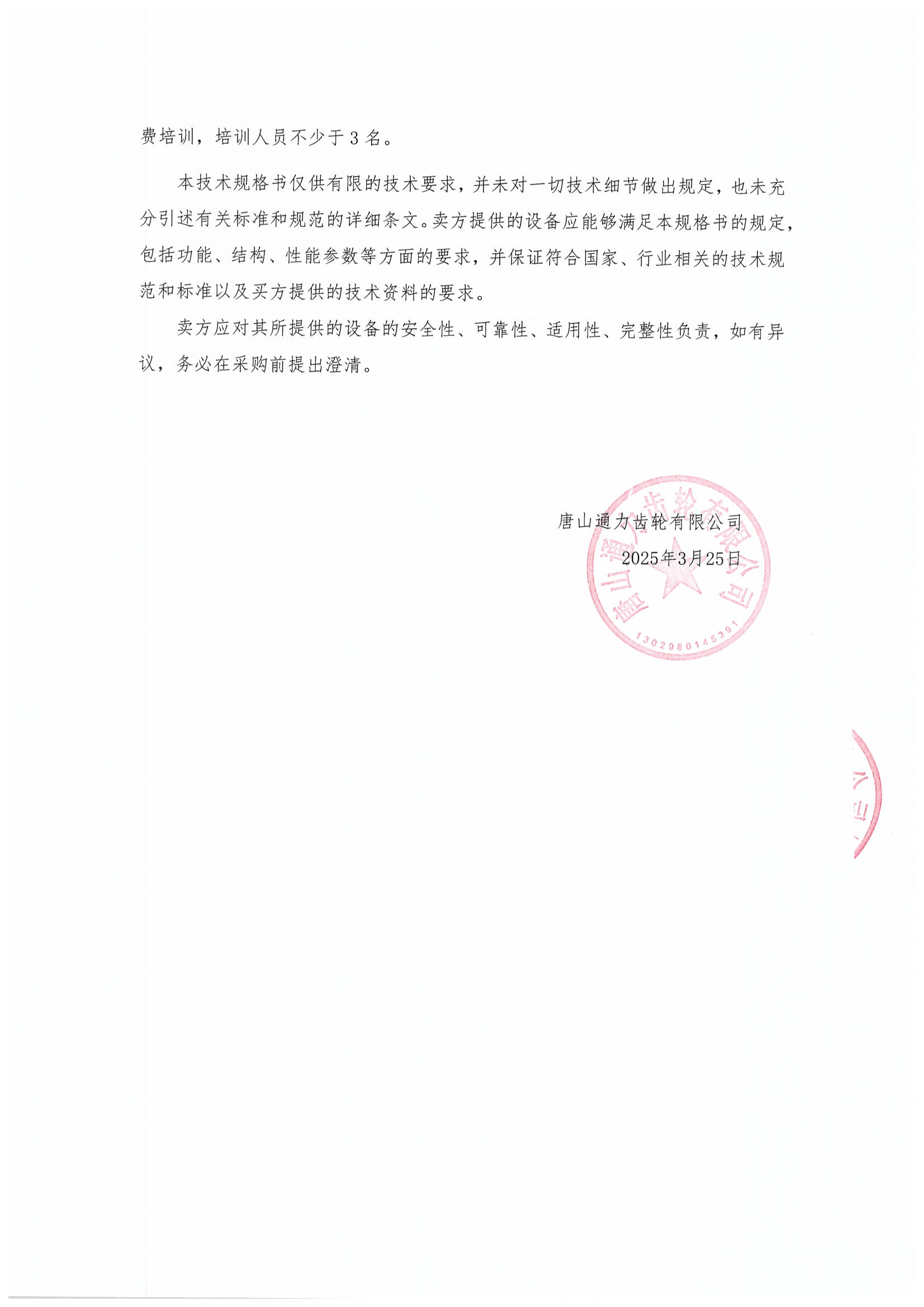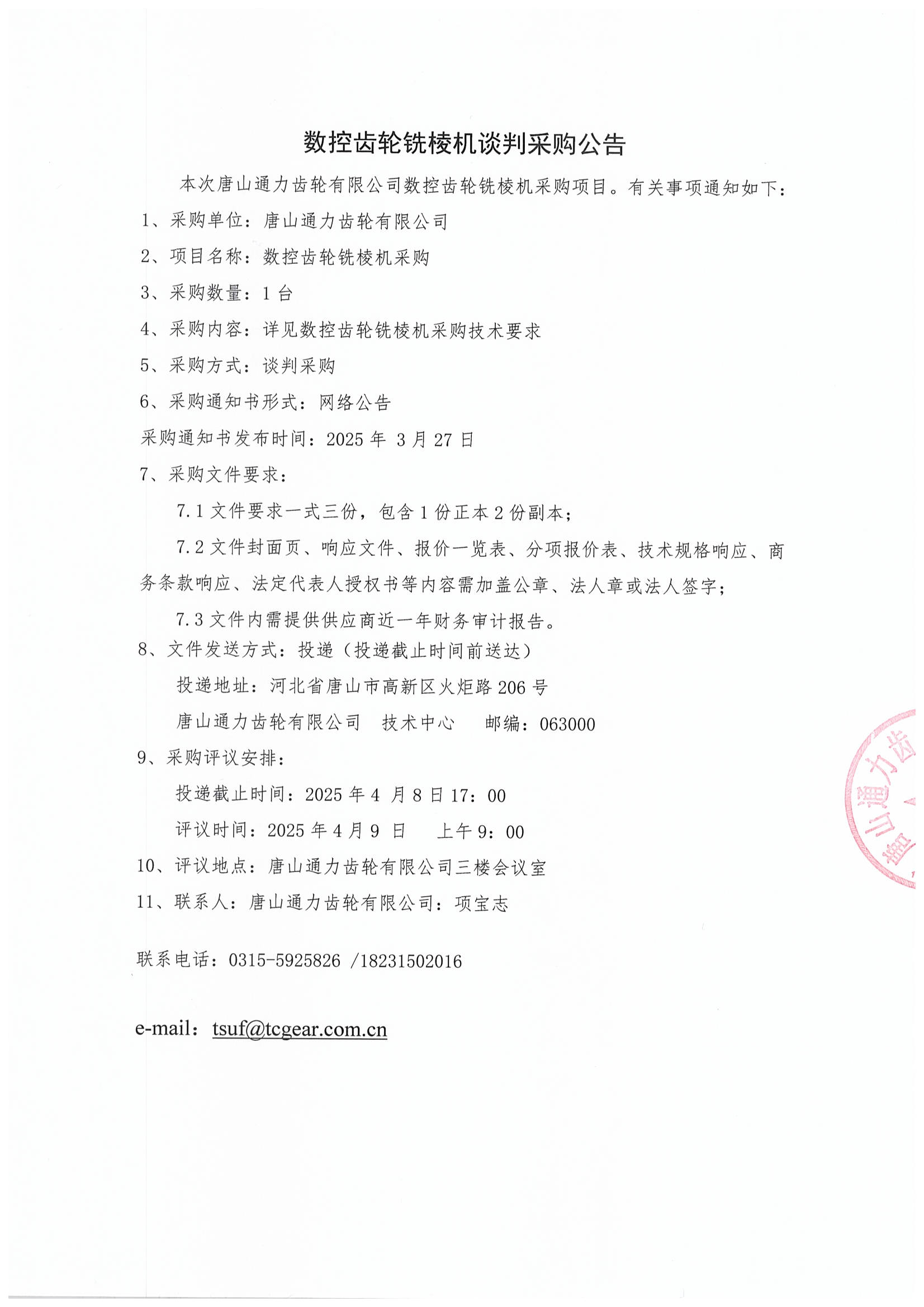 唐山通力齿轮有限公司数控齿轮铣棱机采购公告